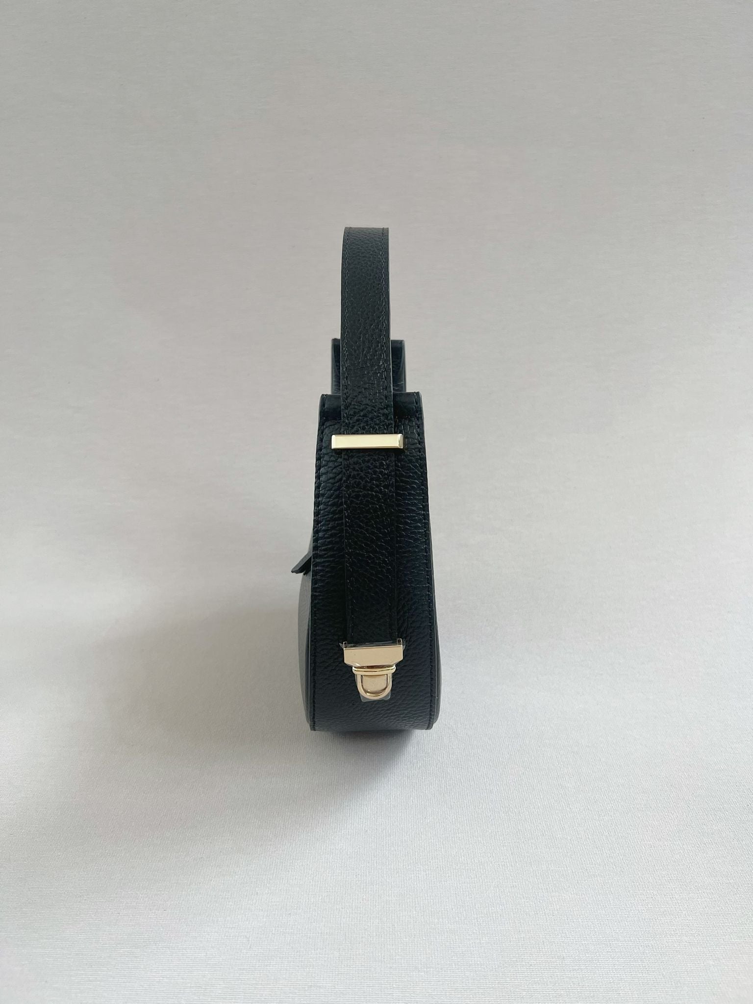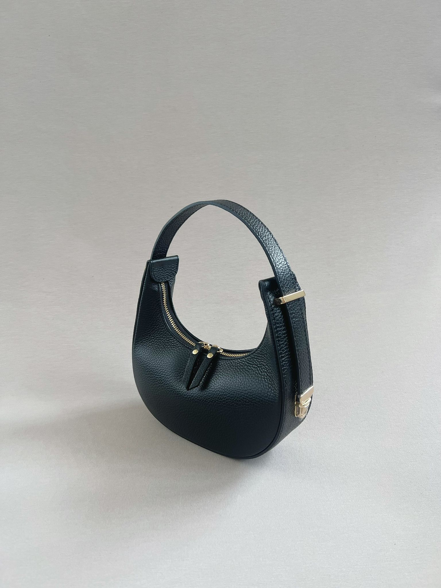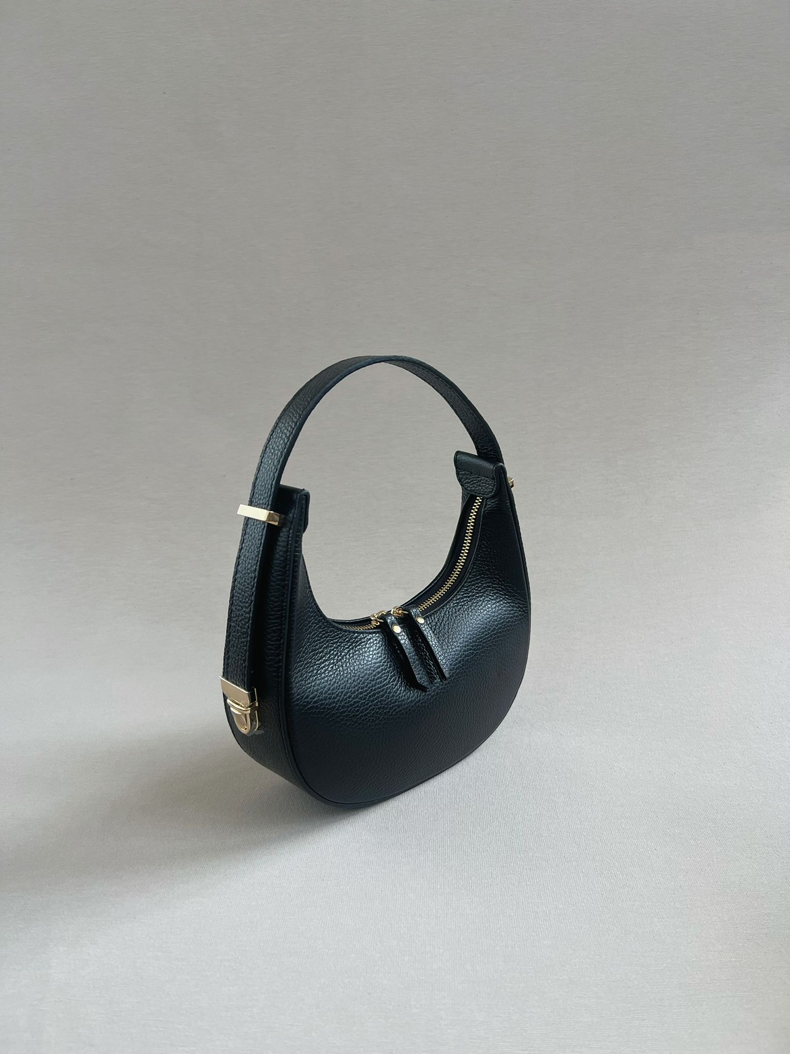 Borsa a spalla con manico semirigido in vera pelle regolabile.