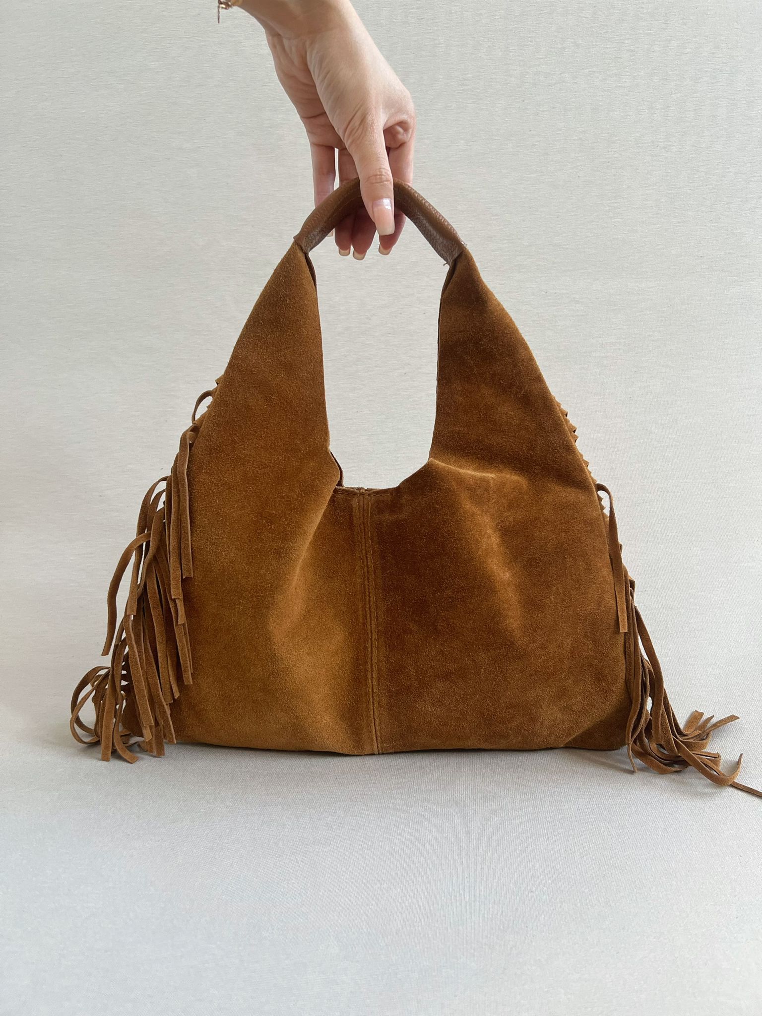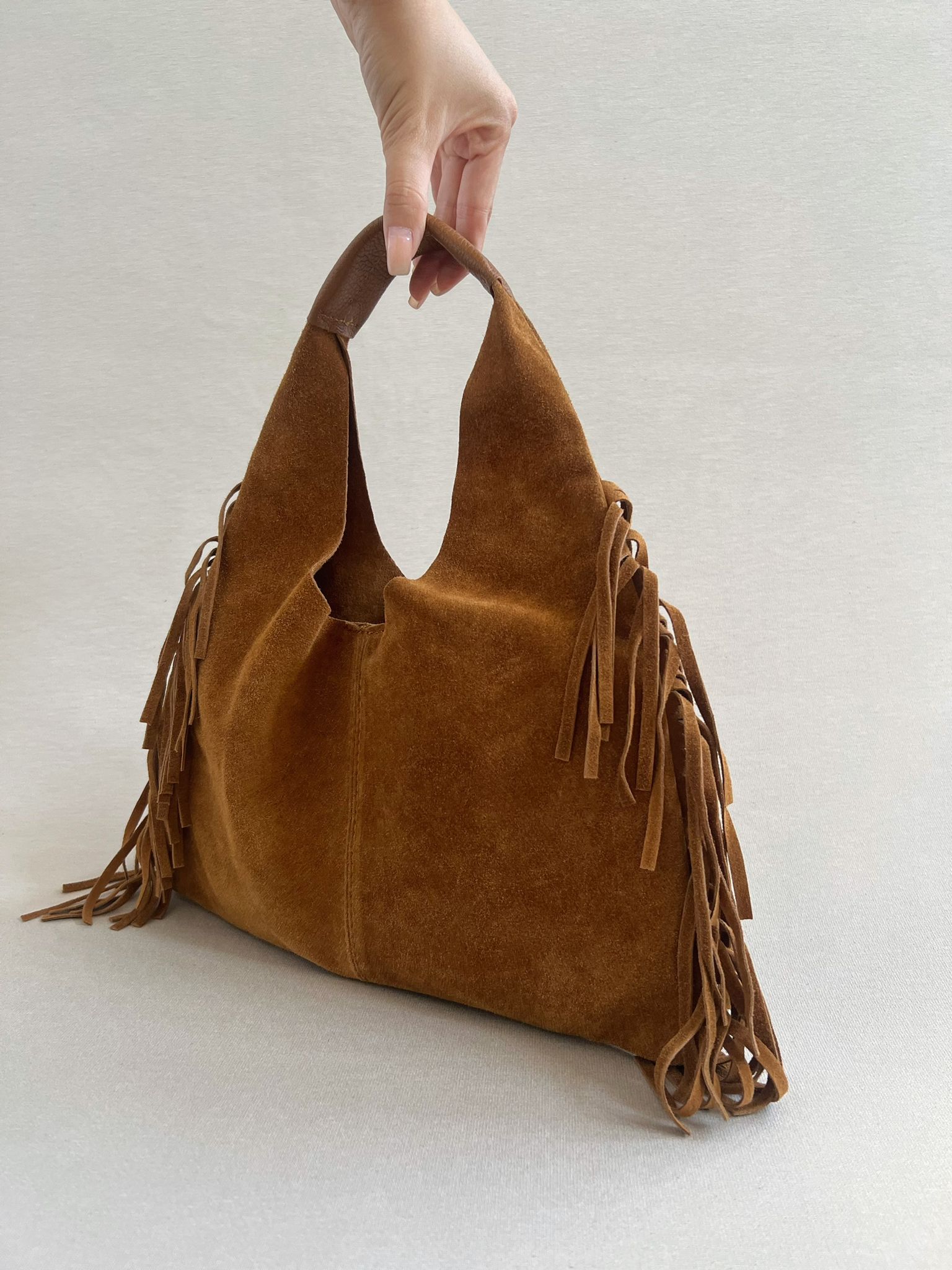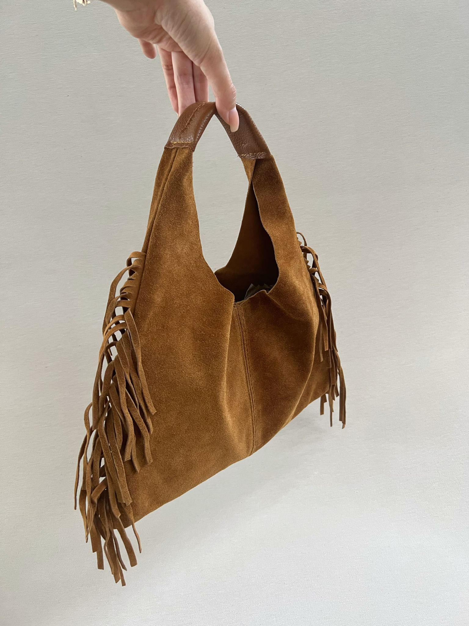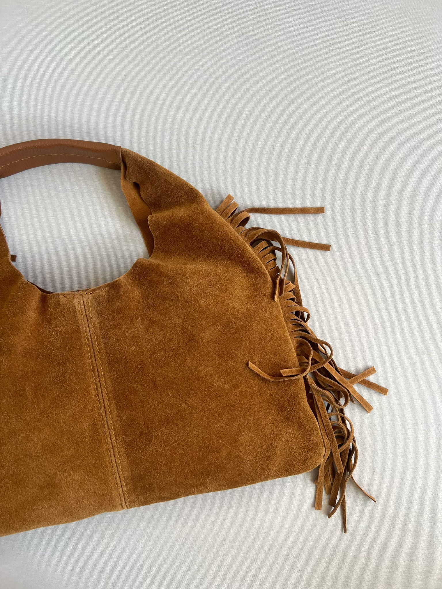 Hobo bag con frange laterali che donano movimento e grinta al tuo stile.