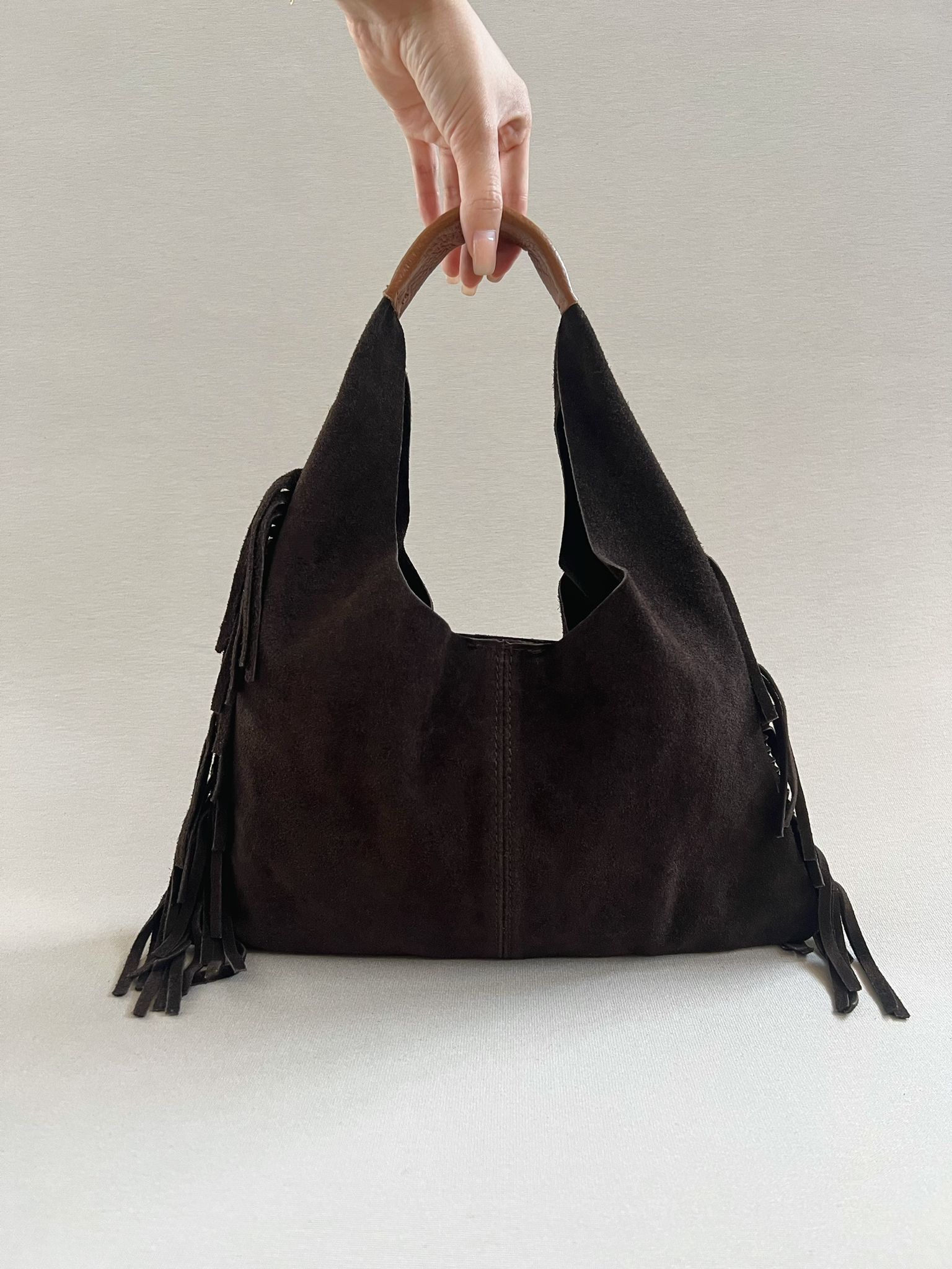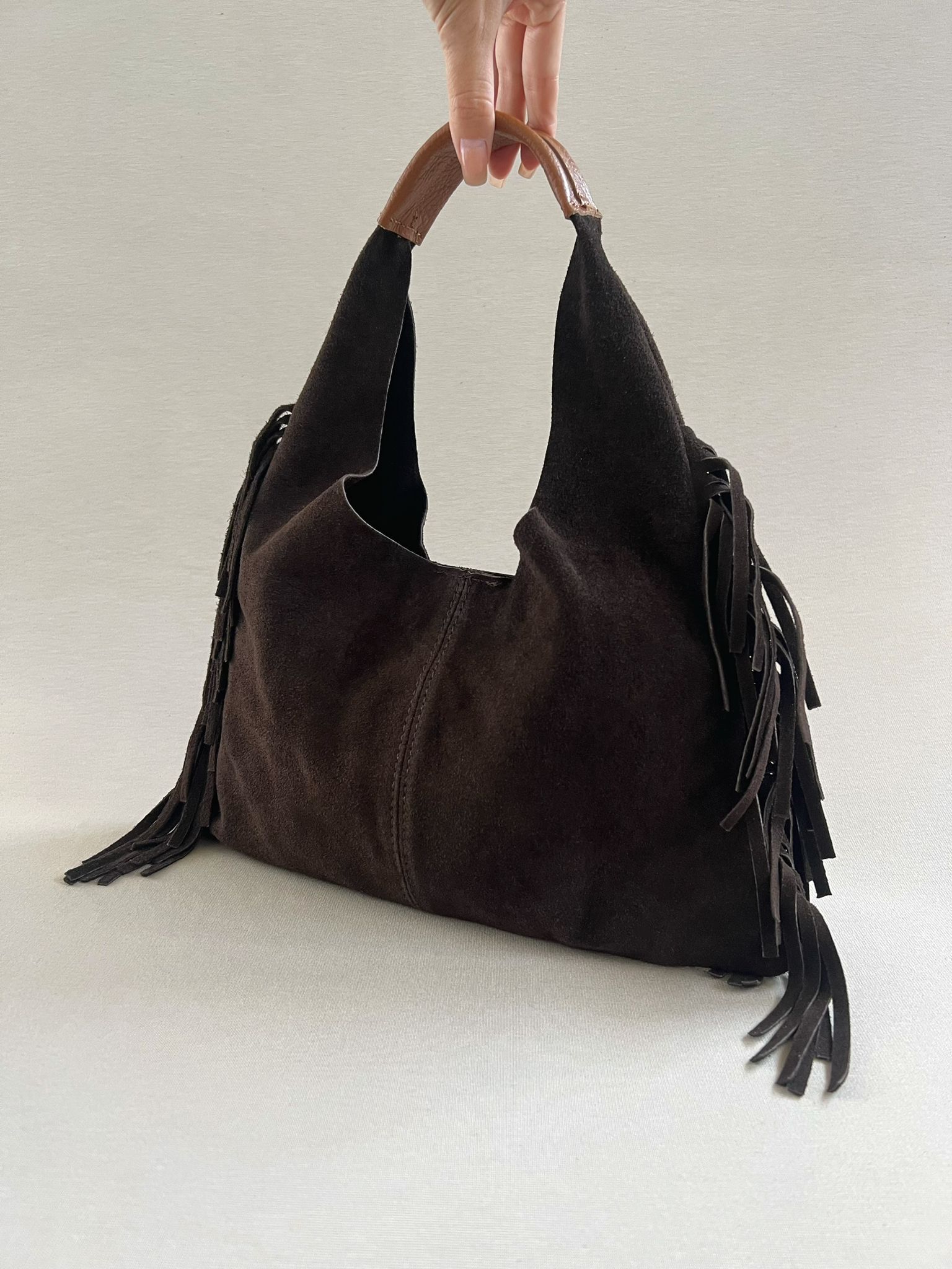 Hobo bag con frange laterali che donano movimento e grinta al tuo stile.