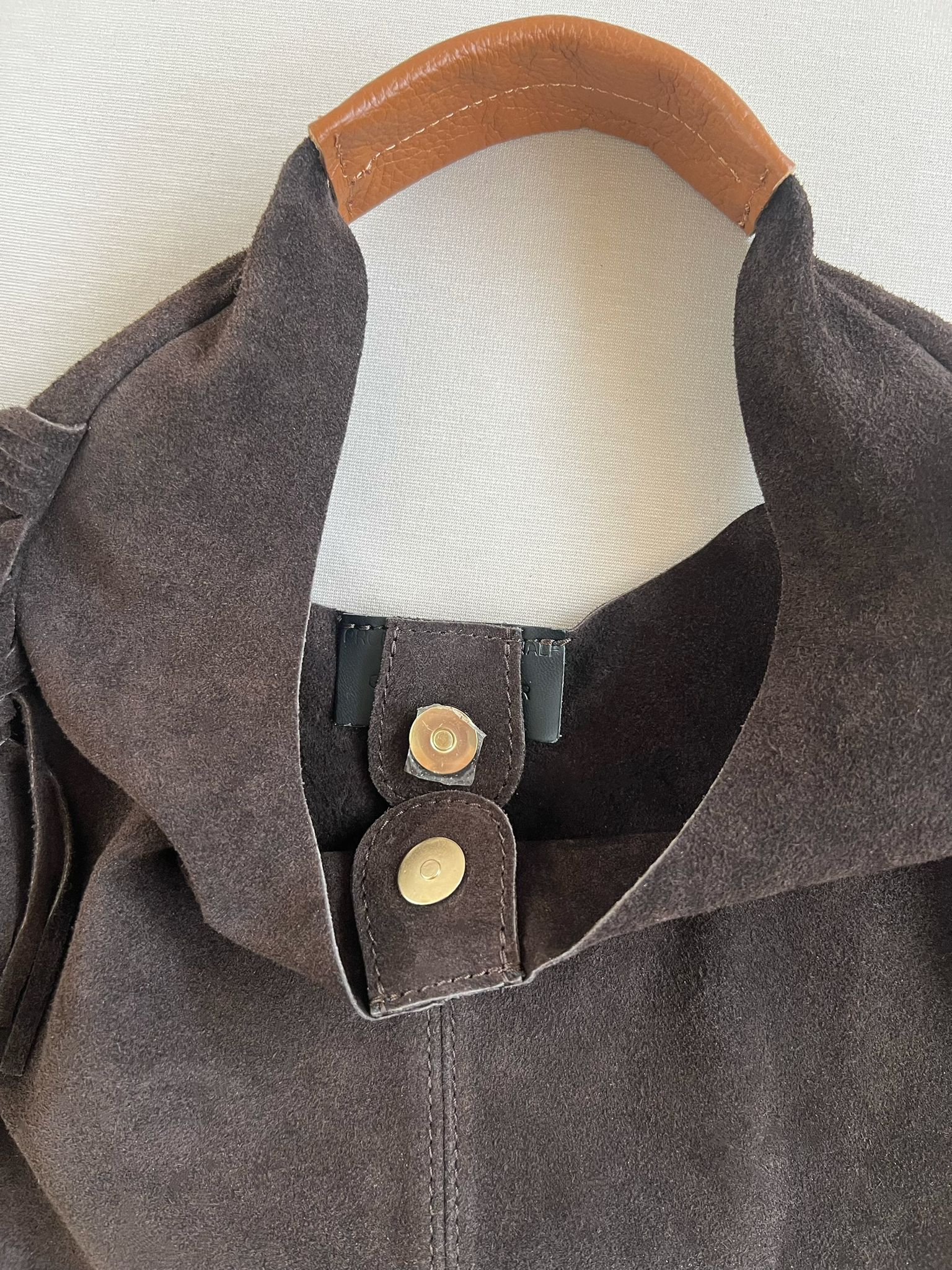Realizzata in vera pelle di camoscio, made in Italy.